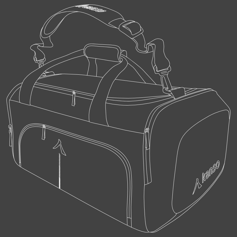 Kanso Intuko 50L duffel is a perfect choice whether you are headed for practice, gym, or as a weekend traveling bag. This sleek minimalistic design has a foam shell so the duffel keeps its shape whether it is fully loaded or not.