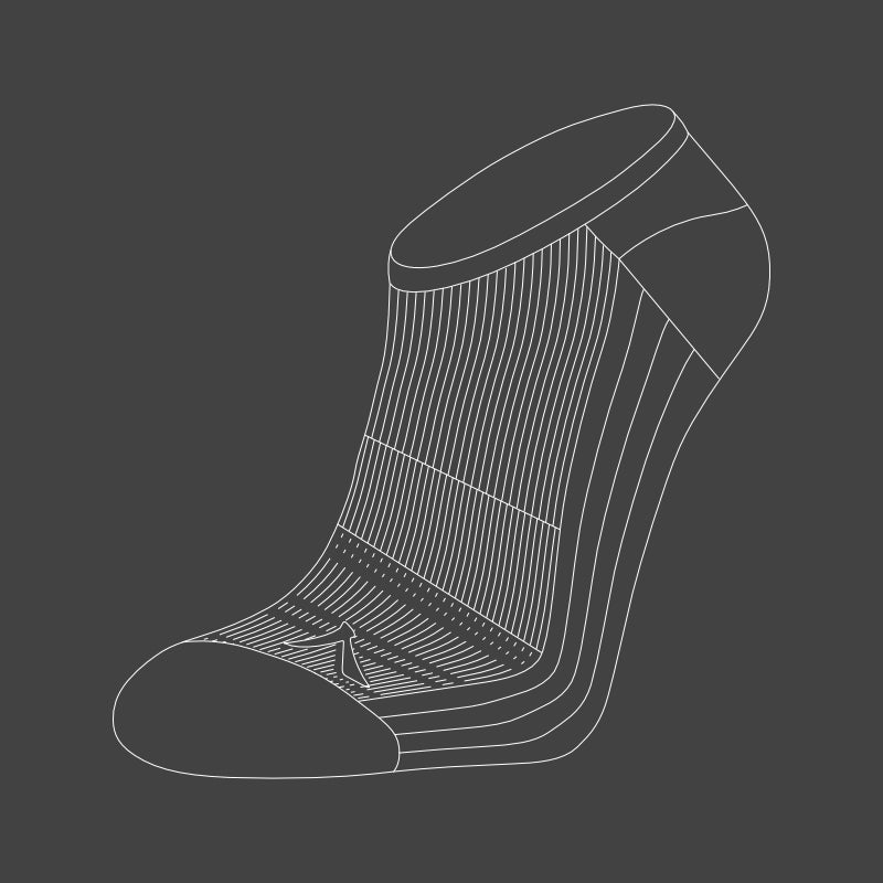 Kanso Pro sock brings comfort with extra cushioning under the heel and forefoot in strategic areas and a supportive v-heel and ankle stitching.