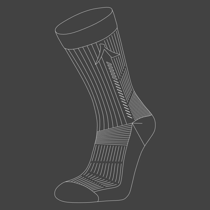 Kanso Opti sock brings comfort with extra cushioning under the heel and forefoot in strategic areas and a supportive v-heel and ankle stitching.